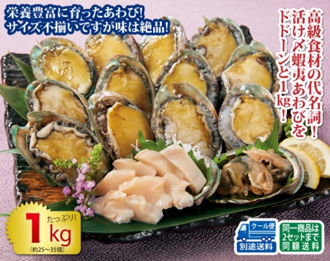 大振り 冷凍あわび(生食用) 1kgセット