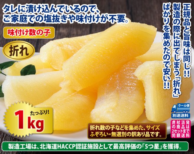 北海道・函館製造 本チャン折れ数の子たくさん 美味しい松前漬け(白造り+黒造り)1kg+1kg 合計2kg