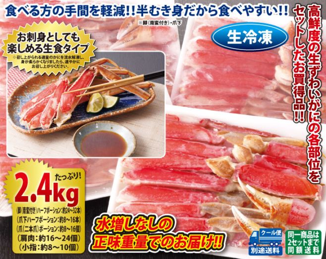 生ずわいがにハーフポーション2.4kgセット(生食可)