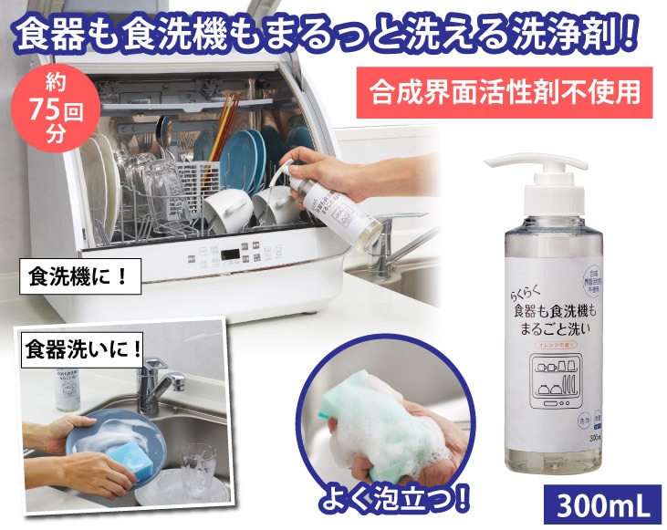 食洗機で食器を洗いながら、同時に庫内も洗浄できる洗剤です。合成界面活性剤不使用ながら、洗浄成分の凝縮により洗浄力はアップ!成分をぎゅっと濃縮。