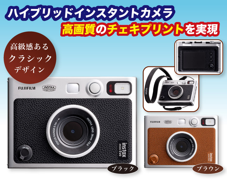 多彩なレンズ、フィルター効果の掛け合わせにより、クリエイティブな写真表現を可能としたハイブリッドインスタントカメラ。 カメラを操作する楽しさにこだわったアナログパーツの搭載や、スマホプリンターとしても利用できる高い機能性、クラシックな製品デザインが特長。