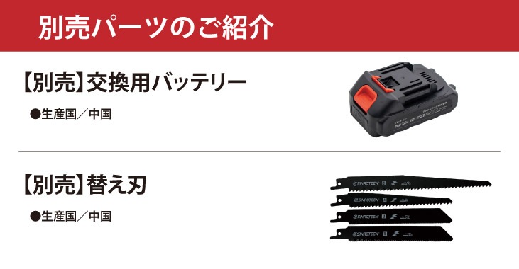 LEDライト搭載 新・充電式コードレス電動ノコギリ+交換用バッテリー