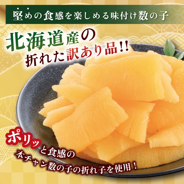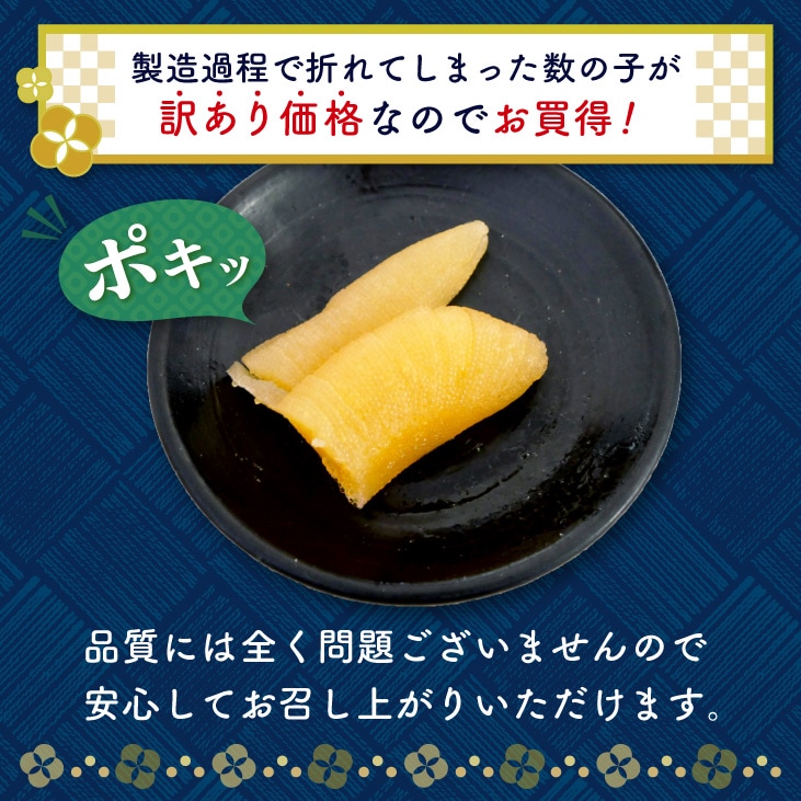 堅めの食感を楽しめる味付け数の子、北海道産の折れた訳あり品!!