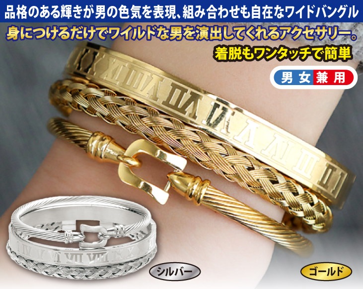 品格のある輝きが男の色気を表現、組み合わせも自在なワイドバングル