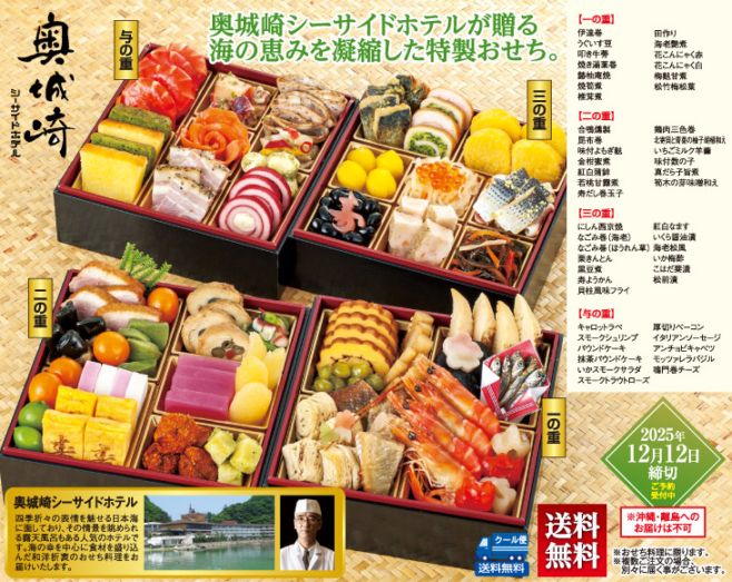 奥城崎シーサイドホテルが贈る海の恵みを凝縮した特製おせち。