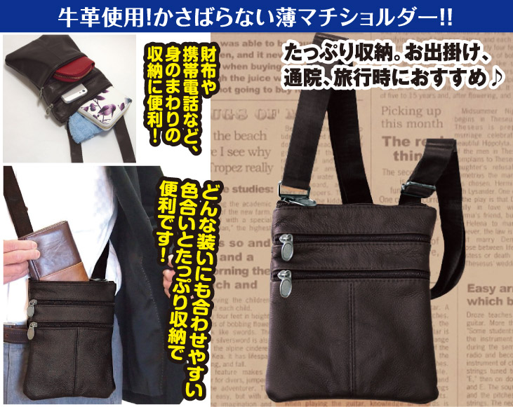 牛革使用!かさばらない薄マチショルダー!!