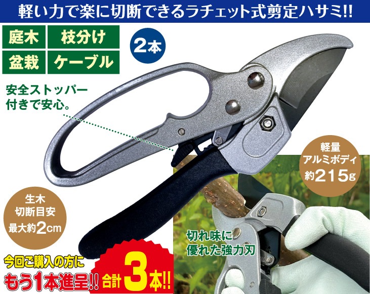 軽い力で楽に切断できるラチェット式剪定ハサミ!