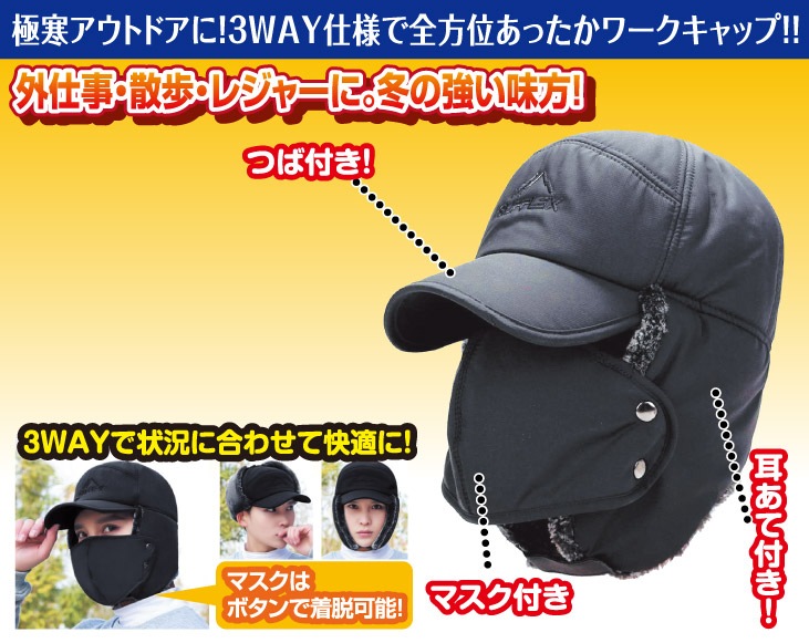 極寒アウトドアに!3WAY仕様で全方位あったかワークキャップ!!