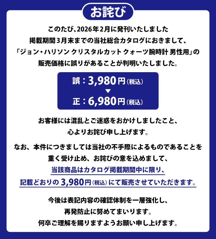 ジョン・ハリソン クリスタルカットクォーツ腕時計