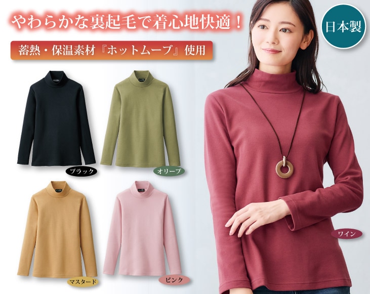 気になるお腹まわりをスッキリ見せるシルエットのTシャツ。 蓄熱・保温素材『ホットムーブ』使用。さらに裏起毛加工により、Wの暖かさを実現!