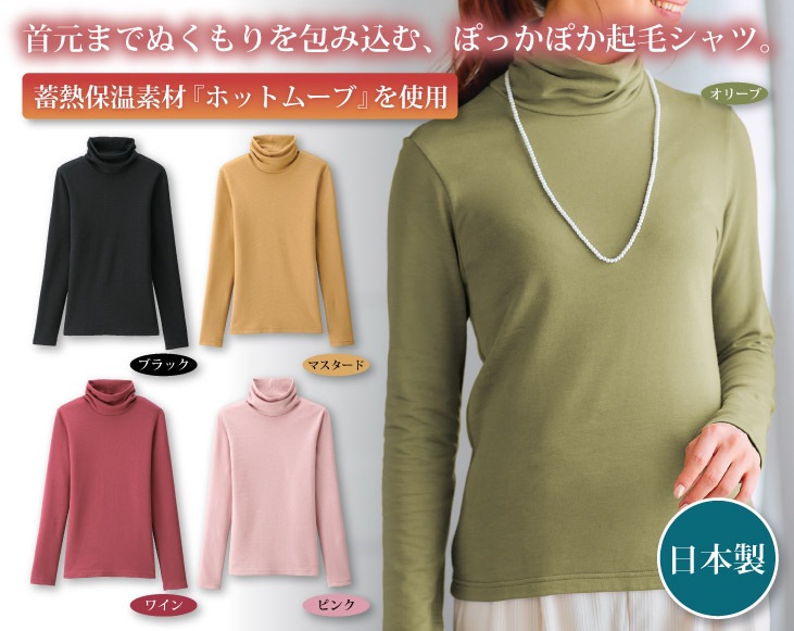ぽっかぽか起毛ハイネックシャツ