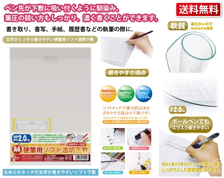 • 共栄プラスチック 硬筆用ソフト透明下敷A4 NO.1204